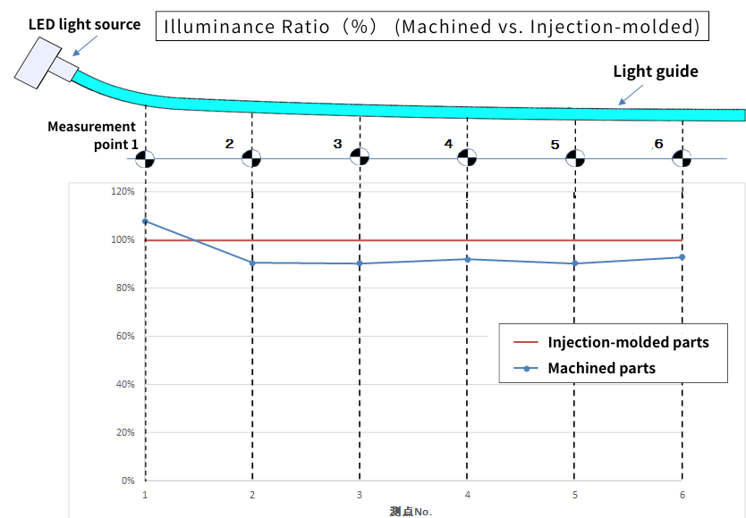 The figure on the right shows an example of illuminance comparison between a machined part and an injection-molded part produced with a mass production mold.